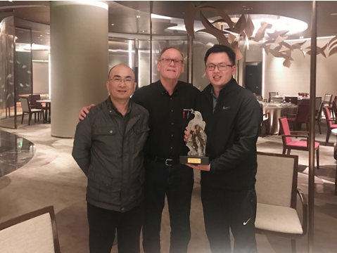 2019年4月26日,風馳公司執行總裁潘凌杰與營銷總監江波軍,應邀與OTR董事長Fred Taylor先生于杭州會晤,Taylor先生親贈水晶紀念雕,感謝風馳公司二十年來的一路陪伴和支持,風馳的日新月異離不開OTR的幫助,OTR的蒸蒸日上也離不開風馳的支持。